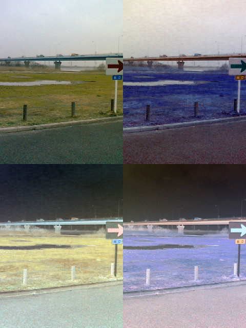 通常の色の反転は、明度と色相を共に反転しますが、明度だけの反転、色相だけの反転をします。