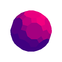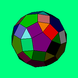 正多面体などの多面体を、キー操作またはマウス操作で回し、それを眺めるだけのソフトです。 立体の種類は主に、正多面体、半正多面体、カタランの立体、ジョンソンの立体です(星型正多面体などの交差や凹凸のある多面体は基本的に表示されません)。 角錐・角柱・双角錐・反角柱・反双角錐も有りますが、底面の形は正多角形およびそれを伸縮したものに限ります(角数は任意です)。 平行法による立体視機能もあります。 DirectXは使用していませんので、見た目はかなり地味だと思いますが、その分Windows環境なら大抵は動くと思います。