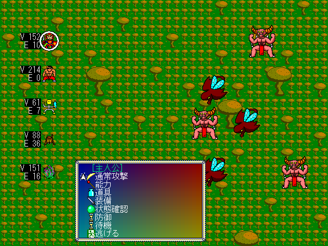 剣や矢などを使って敵をとりあえず倒して、フィールドをとりあえず駆け巡って行きます。 未だ完成には到底至らない段階ですが、これ以上更新する機会あるかどうか解らないので公開してます(^^;。 一応クリアっぽいものは設けています。