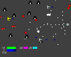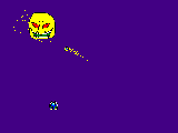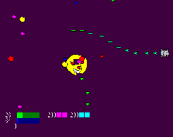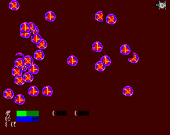 射程の異なる2つの武器を使い分けて、迫り来る敵を破壊します。 一応エンディングらしき物がある「普通版」と、スコアが記録できる「永続版」が選べます。 「普通版」は、1ステージにも満たない程度の長さでです。 絵の下手さと、ゲームの単純さ、及び斬新性の無さが売りです。しかも音が出ないので静かでいいです(爆) BUSSHERの未完成版を独立させた形で発生した物です。 |