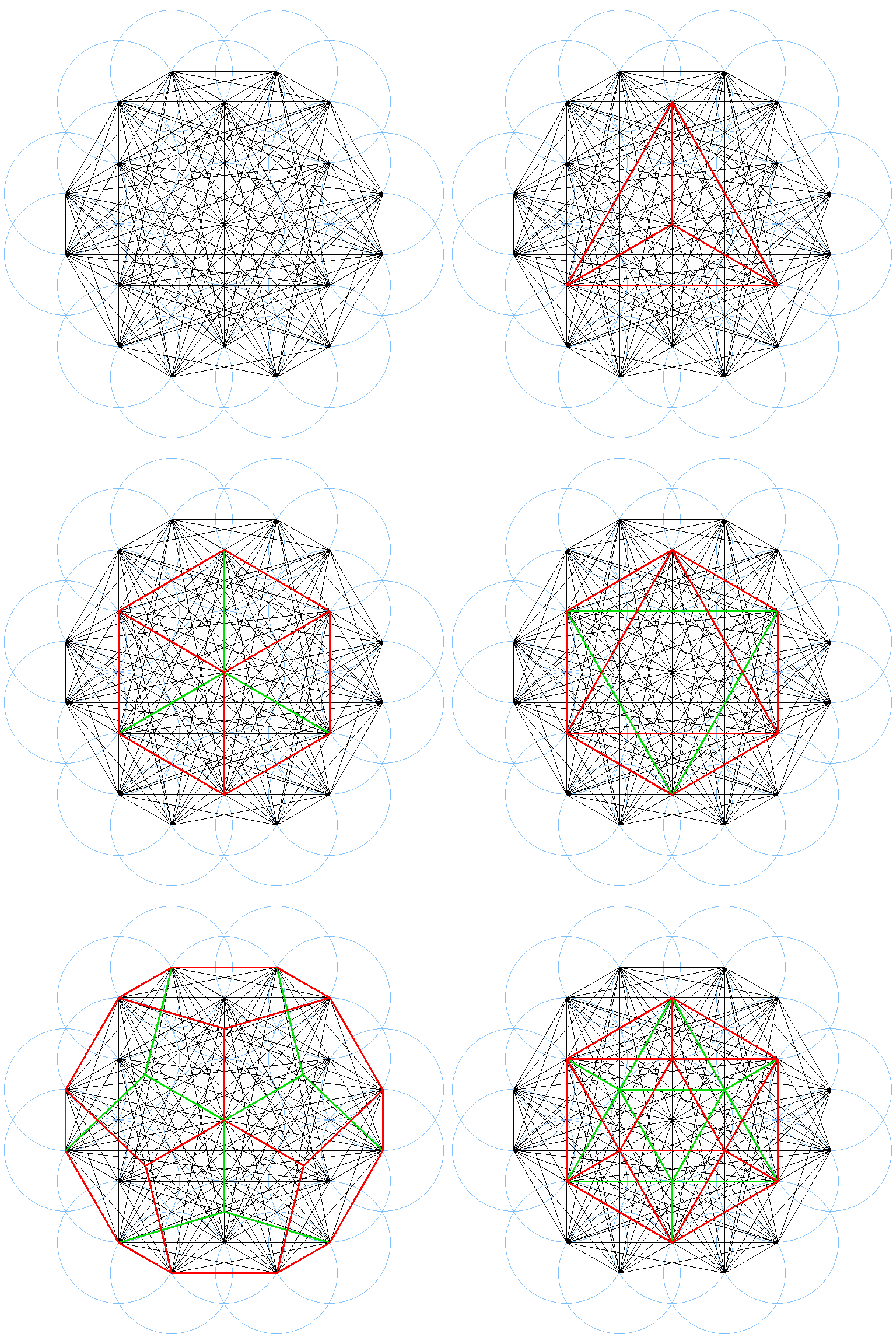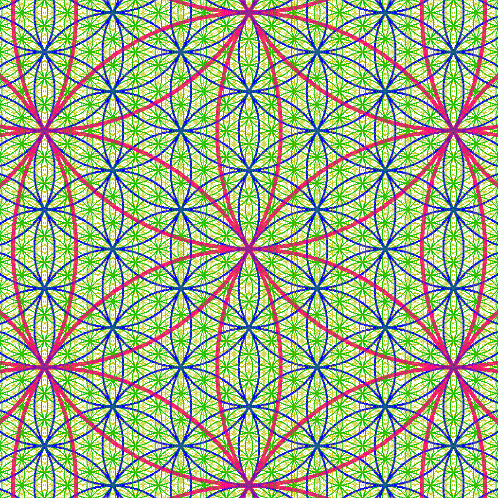 フラワー・オブ・ライフにサイズが1/3、1/9、1/27のものを重ね合わせています。