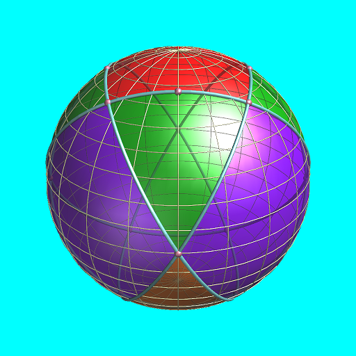 球面幾何学の世界では、ユークリッド幾何学上では現れなかった星型も表せましたが、