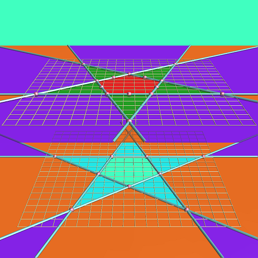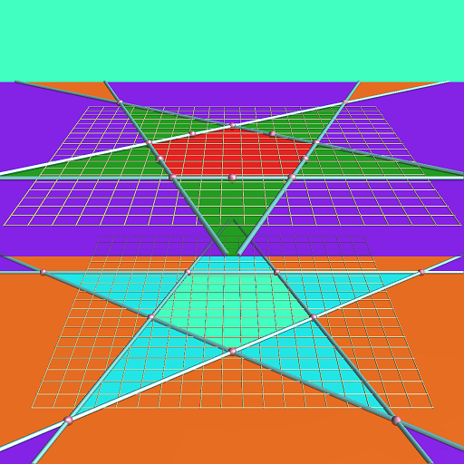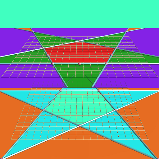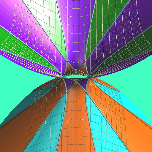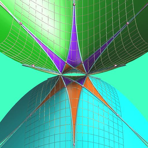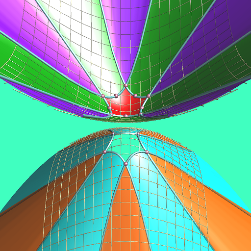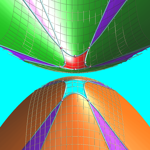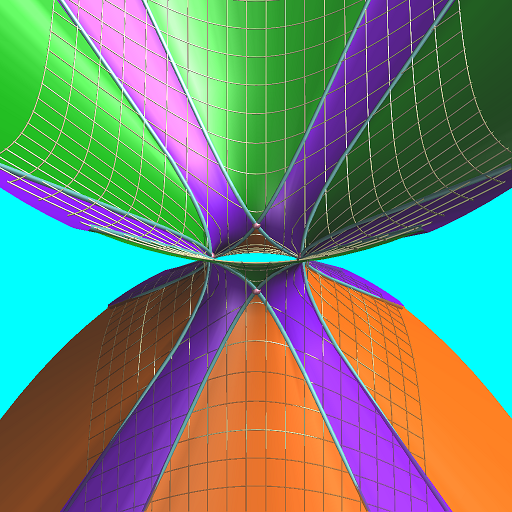 二葉双曲面の方が、先ほどの2枚の平面に相当し、これに一葉双曲面が加わった形となります。