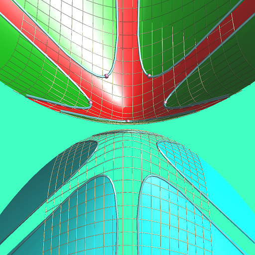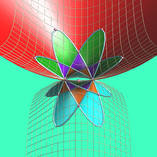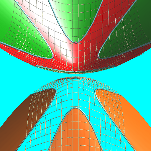 以下のように、二葉双曲面の表裏分と一葉双曲面との合計3つの「葉」が必要になりそうです。