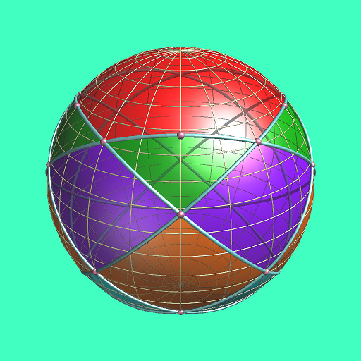 | 3 | 6つの球面幾何学的な4/3角形で構成された、球面幾何学的な星型正多面体 | ![]() |