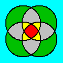 | 4 | 6つの正方形を交差させて構成された球面幾何学的な星型正多面体、あるいは、一角形で構成された二面体12個の複合 | ![]() |