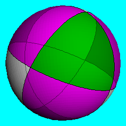 球面幾何学上では以下のように、三芒星(trigram?)や四芒星(tetragram?)も考えることができます。